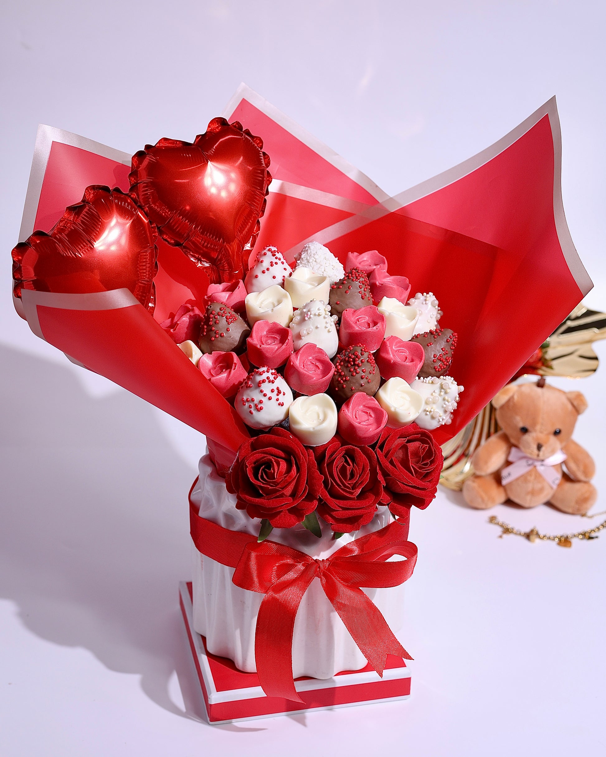 Fresh fruit & chocolate crafted into a romantic gift for someone special.
